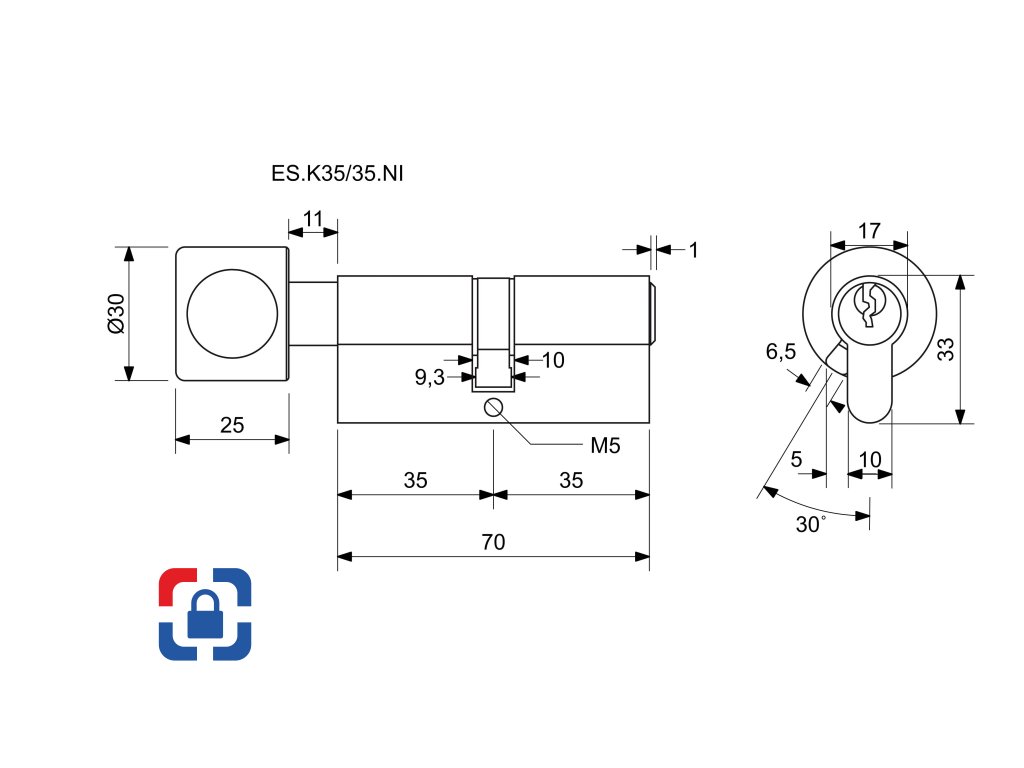 - Vložka je vybavená 6stavítkovým bezpečnostným mechanizmom, ktorý odoláva odvŕtaniu aj nedeštruktívnej dynamickej metóde (bumping).