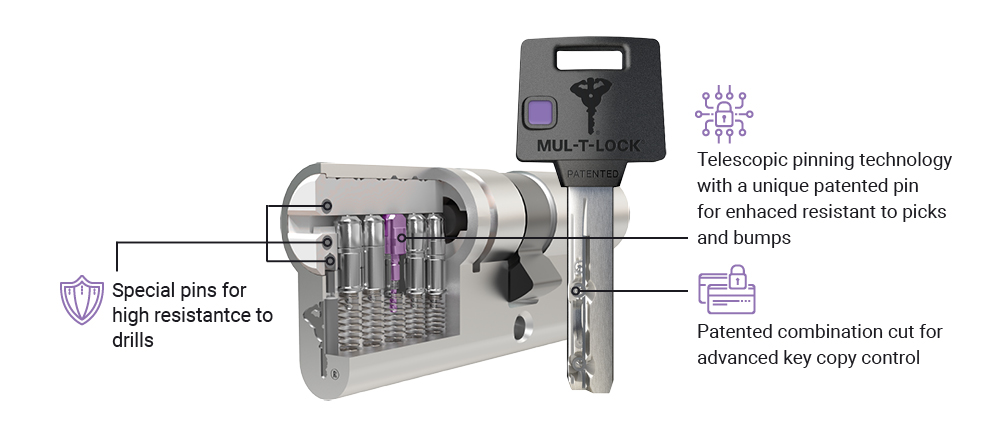 Riešenie MTL™400 je ideálne na zaistenie bezpečnosti vašich blízkych a/alebo majetku. Kópie kľúčov je možné vyhotoviť len po predložení jedinečnej magnetickej karty autorizovanému zámočníkovi Mul-T-Lock, čo poskytuje ďalšiu úroveň zabezpečenia systému, ktorý už aj tak poskytuje vynikajúcu bezpečnosť.