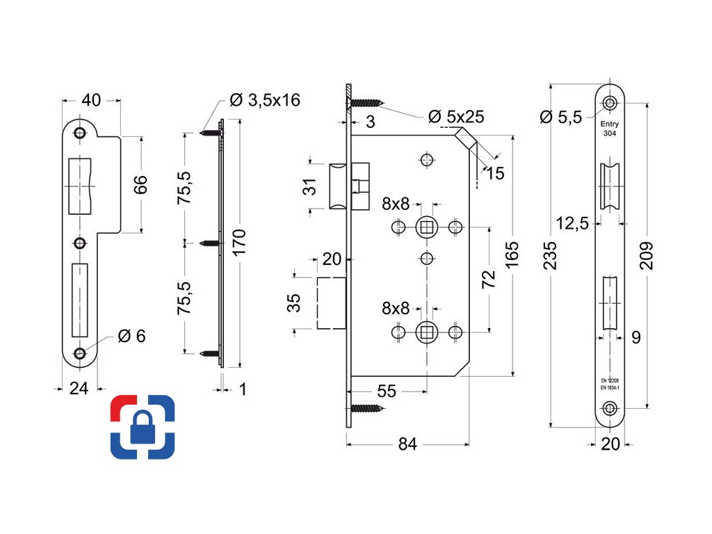 Zadlabací zámok s certifikátom na 500 000 cyklov otvorenia